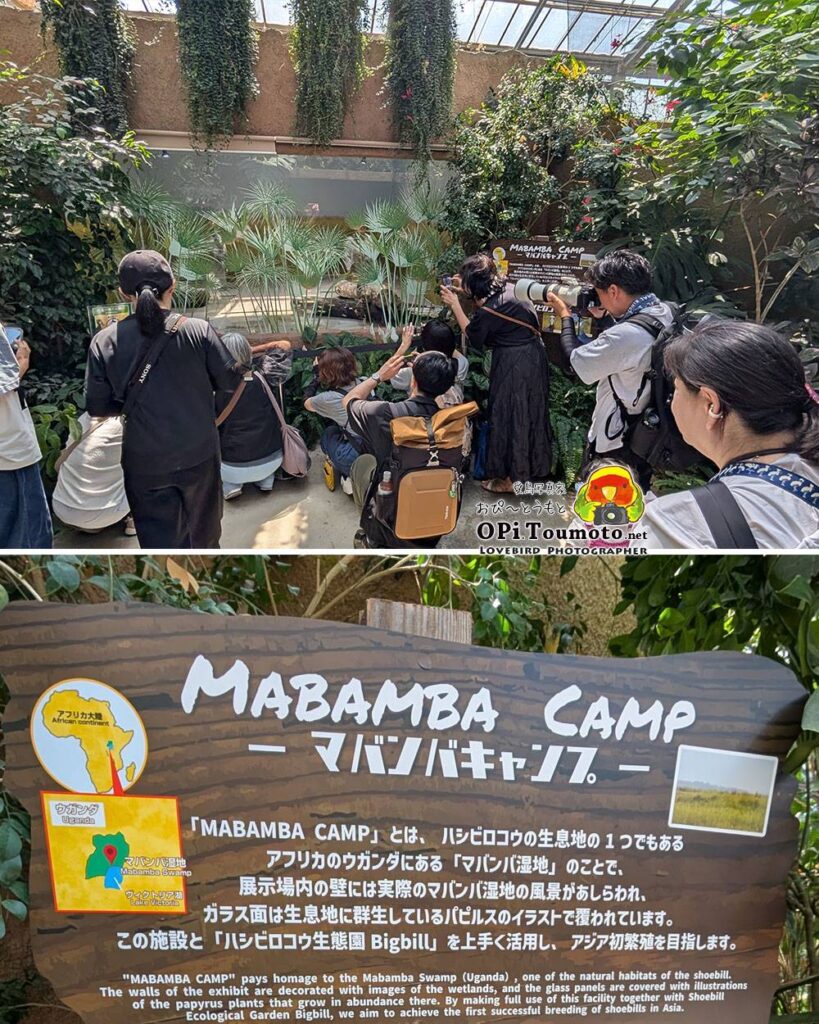当面はハシビロコウ生態園ビッグビルの南端に新設された「マバンバ キャンプ」で交代制展示とのこと。